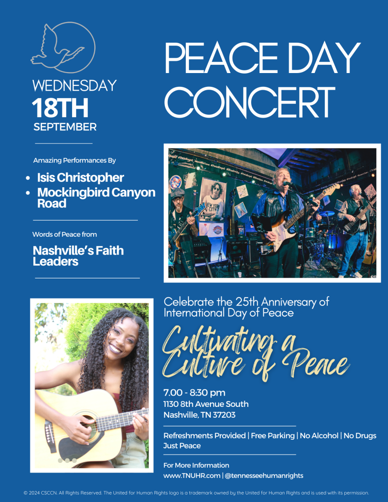 Celebrate with a concert featuring local musicians and words of peace from Nashville’s faith leaders.